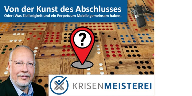 Denn ansonsten läuft es weiter wie ein Perpetuum mobile: Von dem erwartet man sich auch, dass es unbeschadet läuft und läuft. Was es aber in Wirklichkeit nicht kann und nicht wird. Und so passiert es dann auch mit dem Krisenmanagement: Unklare, nicht vorhandene oder viel zu weit gesteckte Ziele können auch hier zu Situationen führen, wo sich das Krisenmanagement immer weiter im Kreise dreht. Aber mit permanent sinkender Effizienz und Effektivität.